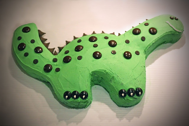 Once Christmas and New Year's were over I had the mental capacity to finally start letting those dinosaurs out of my head! I found a fairly simple dinosaur cake recipe/template on the Betty Crocker website here... but quickly realized I am not Martha Stewart. Damn that crumb coat. Nevertheless I'm really happy with how it turned out. So cute.